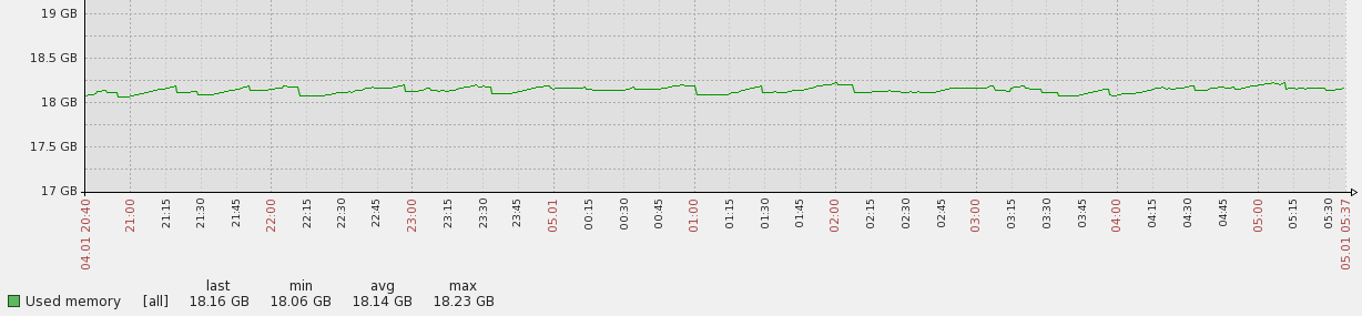 Per-node system memory usage (in MBs): Node 0 Node 1 Total ------ ------ ----- MemTotal 32436 32768 65204 MemFree 8271 8287 16558 MemUsed 24165 24481 48646 Active 20294 16002 36296 Inactive 2359 7289 9648 Active(anon) 20275 15289 35564 Inactive(anon) 2338 6588 8926 Active(file) 19 713 732 Inactive(file) 21 701 723 Unevictable 0 0 0 Mlocked 0 0 0 Dirty 0 0 0 Writeback 0 0 0 FilePages 126 5531 5657 Mapped 1 114 115 AnonPages 22528 17760 40288 Shmem 1 3205 3206 KernelStack 7 38 46 PageTables 43 69 112 NFS_Unstable 0 0 0 Bounce 0 0 0 WritebackTmp 0 0 0 Slab 206 210 416 SReclaimable 144 66 210 SUnreclaim 62 144 206 AnonHugePages 2 0 2 HugePages_Total 0 0 0 HugePages_Free 0 0 0 HugePages_Surp 0 0 0 |