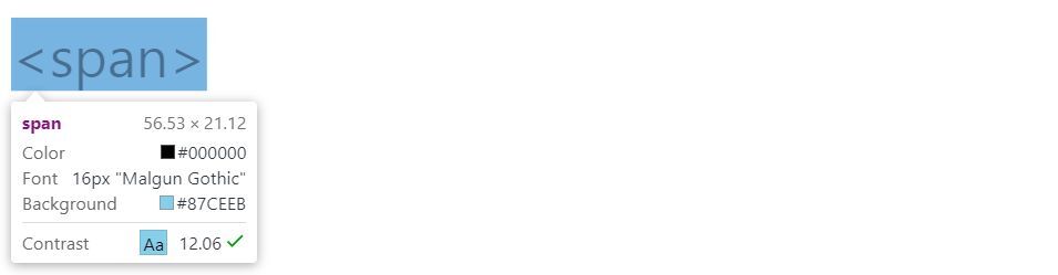 ■ <span> : inline element (인라인 엘리먼트) - 자기 content 만큼의 테두리를 쓰는 애들. content에 해당하는 <span>이라는 텍스트가 자기만큼의 공간을 차지하는 것을 볼 수 있다.